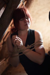 Lena ist schon eine ganze Weile in der Kink- und Fesselszene unterwegs, und hat einen strukturierteren Zugang zu Shibari 2019 durch ihren Partner Andi bekommen. Durch ihn hat sie auch ihren Weg ins Kinbaku Studio gefunden, wo sie vorwiegend in den Seilen, gelegentlich aber auch fesselnderweise gefunden werden kann